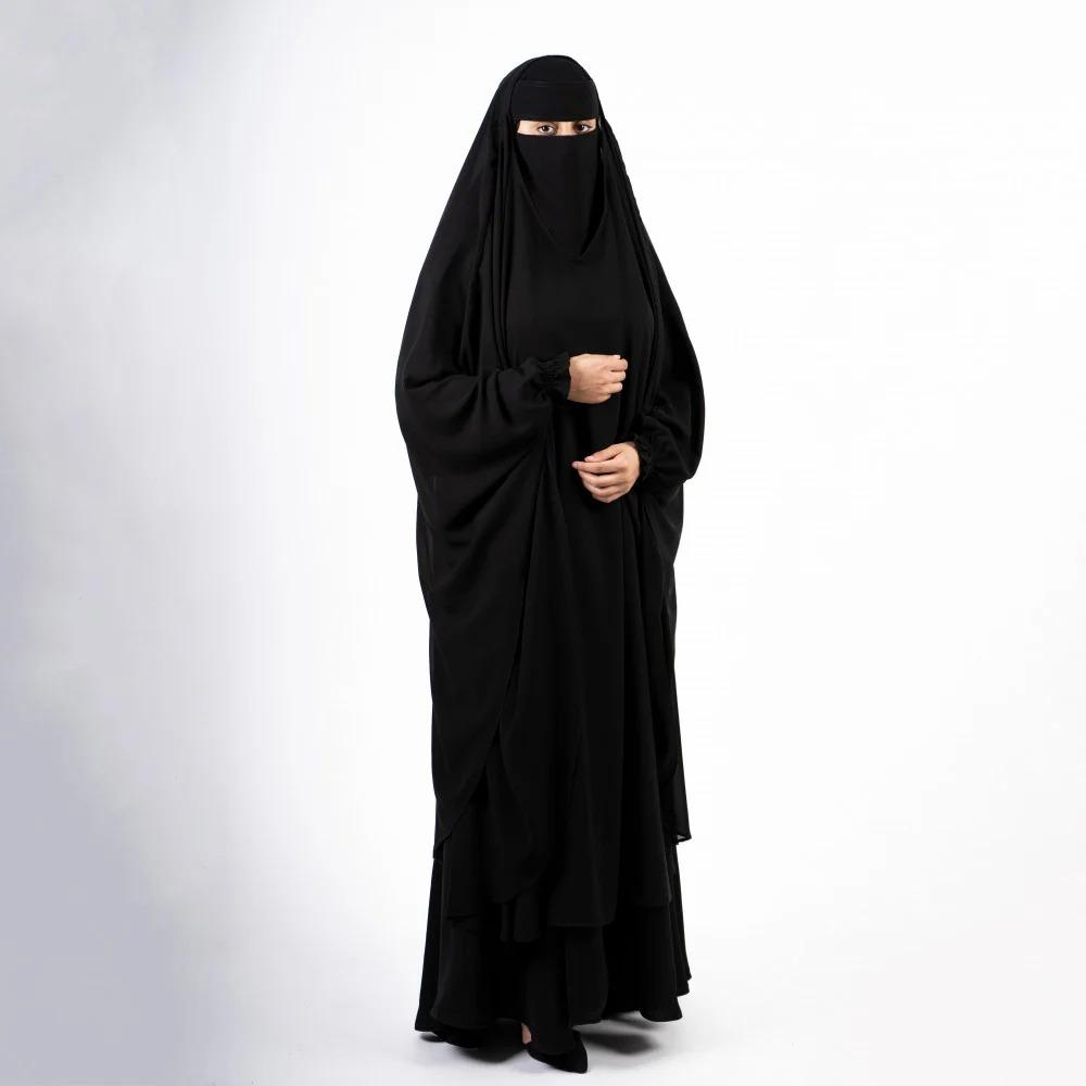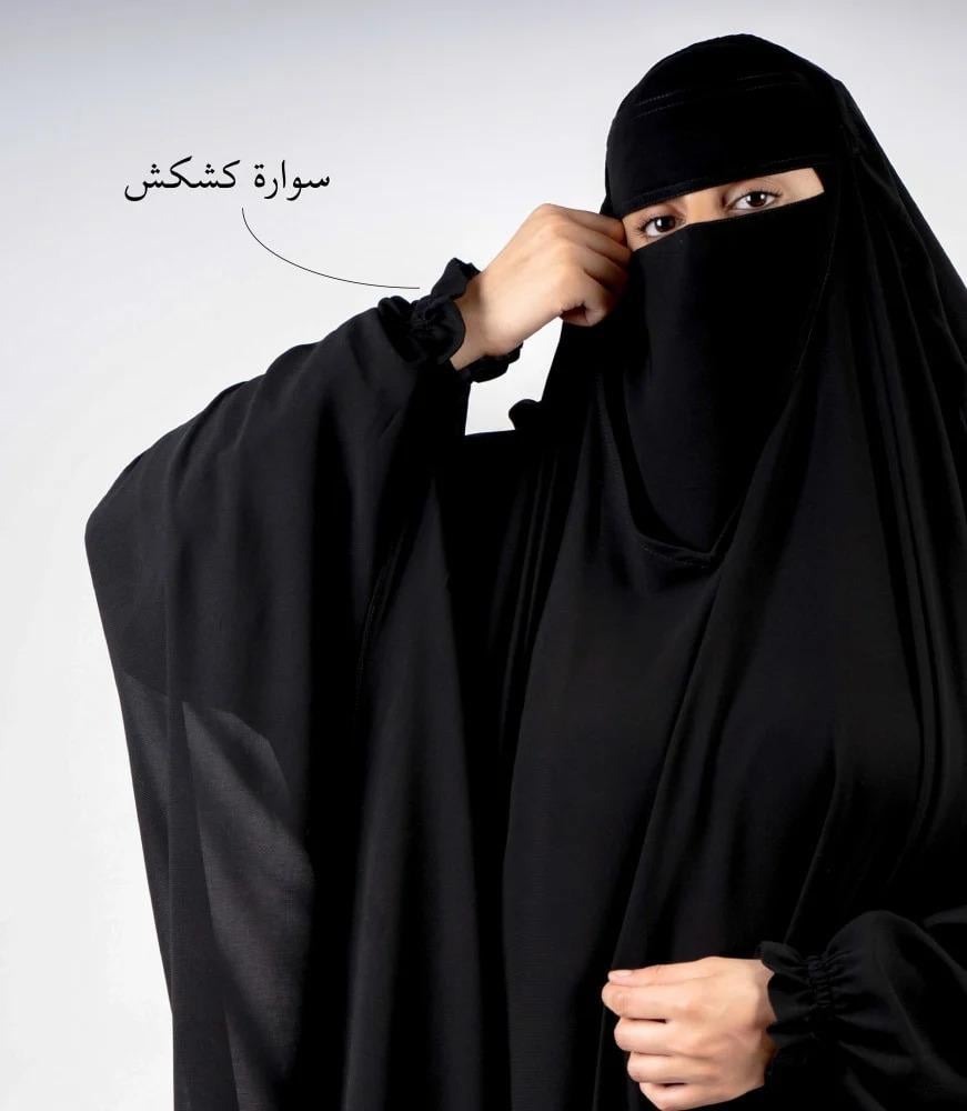 الخمار يثبت على الرأس بمطاط مقفل من الأمام، ولابد من لبس الطرحة والنقاب معه لإطلالة ساترة وجميلة.