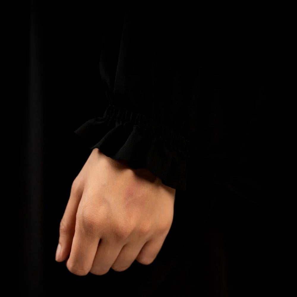 الخمار قصته قصة الخمار الكويتي وأكمامه تنتهي بمطاط بكشكش.